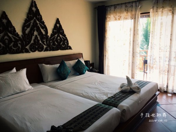 这里原来是叫Best Western Ao Nang Bay Resort & Spa Krabi,隶属于最佳西方集团,不知为什么前几个月换了老板改了名,好在住下来各方面还是不错的.双床房,虽然设施没有大床房看上去豪华,但是好歹我们也订的高级房,差不到哪里去,只是没有面朝泳池而已,阳台的阳光很好,晒衣服OK。可喜的是这家酒店的双床房是一大一小两张床,非常适合我们这样的一家三口