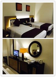 Adhi Jaya很棒,闹中取静,酒店内环境很好,房间干净,自带餐厅酒店客人有一张85折的coupon,早餐很丰盛,就是泳池关闭的太早,9点就不让玩了。酒店的位置很赞,出门两边各有一个24小时小超市。出门右转走路大概2分钟,有一排ATM机,再往前走全是吃饭的地儿。再往前走,路口那有个 Quicksilver专卖店,专卖店往里走的路上都是店面。