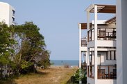 华欣的度假酒店感觉都在一条街两侧,这家离市区稍远,需要打tutu或者摩托才能到,酒店每天有三班班车载客去市区,还算方便。海景泳池是亮点,从边上的楼梯下去直接是沙滩。