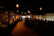 沙屋:前台、沙屋和水屋墙上都挂画,图案不同,都是鸟的内容,卫生间是半露天的,床布置的很简单。刚住进来时,奇怪为什么没送蜜月果篮和红酒,虽然都是老夫老妻了,不要白不要嘛,还是让代理加comment的了,还以为是代理忘了,原来是晚上才铺。不过只有铺床,水果和酒都没有,对了,最后一晚还有所谓的蜜月大餐,说实话,angaga的蜜月特惠,不要也罢……马尔代夫每天都要给整理房间的小黑小费的 说一下angaga的餐饮,我们是HB,包早晚餐,都不含饮料,早餐到10点,晚餐7点半开始,都是自助。早晨吃的饱的话,中午基本不用吃,亦可以带点零食临时充饥。早餐不错,有巧克力奶可以喝,不用喝水了,我主要靠大饼鸡蛋和培根过活,老婆主要靠酸奶过活。 晚餐东西都很实在,鱼肉、牛肉、羊肉、猪肉(虽是伊斯兰国家,但度假村有特权做猪肉及卖酒,马累则不行)都是烤着吃。但是都非常老,绝对是十分熟,嚼的腮帮子和太阳穴疼,也不知道平常吃4分熟的那些外国人都是怎么吃下去的。吃的种类比较多,口味一般,管饱不管好的那种。买水喝不完就放在自己桌子上,下次再喝,我们买了一瓶1.5升的,3.5美金加10%服务费。 由于comment里面注明蜜月,最后一天有蜜月大餐。说白了就是一人送了一杯饮料,然后小黑替你把吃的送过来,吃的全是自己能拿的那些,鸡肋都算不上,非常没用。而且速度很慢,我和老婆忍不了自己去拿自己吃了,弄得小黑也挺纳闷的。转天给了他2美金小费,自助餐厅不是必须给小费的。最后拿过来两张账单让我签字,honey moon dinner,350美金一位!吓我们一跳,经过询问才知道价格就是摆着看的,不需要付钱,只签字就好,你们倒是提前说好啊……