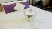 硬件:房间比较宽敞明亮,卫生间也很宽敞,有个不算大也不小的阳台,带电脑,有吹风机,电熨斗等贴心的用品,当你坐了一晚SleepingBus到顺化时还下着小雨,就知道电熨斗和电吹风多么的贴心。 软件:早上我们到酒店有水果和果汁欢迎,一个房间送2个小蛋糕,前台和服务生都会英语,很热心的帮我们在地图上做好各种标记。 早餐:自助餐 距离:不靠海,距离新咖啡比较近,步行10-15分钟左右。 周边环境:出酒店往左手方向走有很多不错的餐馆。 价格:两间房税后300多RMB。 总体:第一次体会到价格亲民,服务贴心的酒店,至少酒店想让顾客感受到他们在乎顾客。总之强烈推荐!