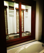 拉堤兰纳河畔温泉度假村离开清迈古城有一定的距离,不在一日游团的接送范围里面,如果去机场打车大约250泰铢,不过算是毗邻长康夜市的,如果想要逛夜市这里倒是不错的。出门交通总体来说不是很便利,适合喜欢泡酒店客人,不适合逛景点的客人。 酒店的整体建筑是兰纳风格,浓浓的古风,环境优美,小船流水,因为就在平河边上,挺有情调。入住一晚价格大约在1200元人民币,含早餐。房间面积比较大,设施完备,游泳池也很舒服。早餐相对五星级酒店而言,有些简陋,没有特别惊艳的地方。前台的英语可以,交流起来没有障碍。