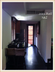 不过在这里住的时候发生了一个小意外,这里吐槽一下:第一天入住时因为check-in的时间比较早,所以房间也没有升级,就是普通的标间,不过这个标间感觉还挺好的,卫生间和卧室中间的木门可以完全打开,躺在浴缸里看电视的感觉挺好的,我们也觉得挺满意。不过晚上从bali collection逛完回来,突然发现房间内洗澡没有热水,而且矿泉水没有补充,就给前台打电话反映。过了一会来了个修理工在卫生间检查,弄了将近半个小时也没弄好,说是这个房间的管道坏了。然后我就急了,自己到前台找值班经理理论去了,“大半夜的都11点了还洗不了热水澡,这还是度假么,我要投诉,bla~bla~bla…”在我的发飙下,值班经理也慌了,赶紧跟我到房间看看,后来提出解决办法:帮我们换个房间,就在隔壁。没办法,为了洗澡为了睡觉,收拾行李换吧。到了新房间一看,我去,换成套房了,本来没有期待的房间升级在这个时候出现了,经理说是为了补偿我们的损失。其实吧,升不升级对我们来说真无所谓,原来那个标间挺好的,这个套房虽然房间多,还有厨房,可是我们都用不上啊,卫生间泡澡时也看不到客厅的电视。不过人家都已经做到这步了,咱也不是那种胡搅蛮缠的人,就算了吧。本来当时挺生气的,还想着回国之后给booking和novotel写信再投诉一下,后来发现气头过了之后就没那么多抱怨了,觉得人家也挺不容易的。要不说生气时千万别冲动,不然过后肯定后悔。