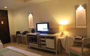 酒店位于苏梅的北边,私密性好,酒店有着出色的园林设计,简直就是一个大花园,风景无限。我们住的小院木门的设计完全是中国式的,院里还有个大秋千,相当舒服啊。房间很大,有独立的衣帽间和盥洗室,还有一个独立的浴缸房。 中午一点就到了酒店,我们的房间下午四点才收拾妥当,为此,酒店专门送了点心和饼干表示歉意,还附了手写的道歉信,大堂接待的台湾美女一次次的跟我们沟通确认,收拾完毕后专程到泳池找我们送钥匙,带回房间详细介绍各种服务。 这家酒店还有个Kids Club,有工作人员带领孩子们进行各种有趣的活动,那几天我看到的有:气球创意手工、手绘雨伞、制作蜡烛、用绒线制作愤怒的小鸟、沙滩烧烤......可心就参加了蜡烛的制作和气球创意,然后整天都要泡在泳池里不肯出来。 酒店晚上有Happy Hour活动,在海滩上摆上白色的竹椅和小桌,海风吹拂、烛光摇曳,气氛浪漫,美酒、果汁无限畅饮,还有歌手现场表演,让人心情愉悦。