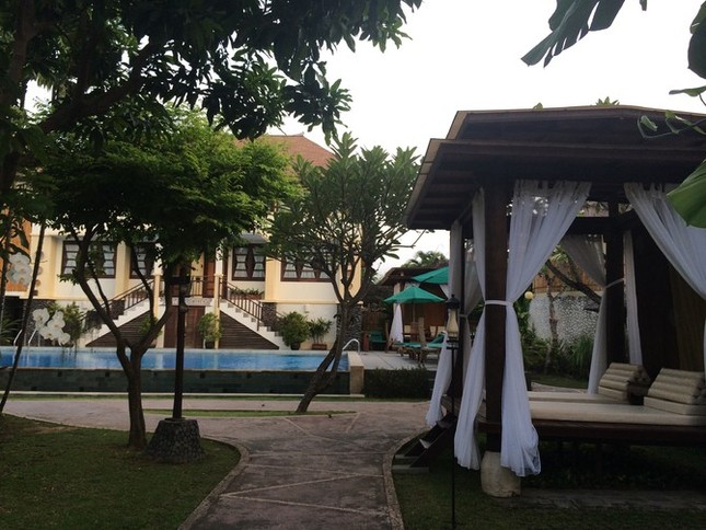 很多人都说来巴厘岛就是来享受酒店的,实在太棒。价格亲民,我们定的酒店在小中心区,叫DESA MUDA VILLAGE,大家可以在地图上找到它并看到地理位置。在地图右中间。这回是独栋的小“别墅”,客厅两边是露天的,洗手间和浴室没有门窗和墙,站在洗手间就能看着客厅旁的迷你泳池。实在太赞。厨房的工具都齐全,还可以自己做饭吃哦!酒店公共泳池目测有两个,一个在房子中间,一个在酒店大堂那。房间内有欢迎水果和小零食,酒店可以送餐到房间。和前面一样,酒店都有安排包车送我们要去的地方。最后面我们下午5点离开的,酒店也安排了包车送我们到机场,实在方便~
