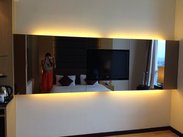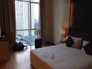 酒店就在沙巴大学附近,大堂感觉还不错。拿房卡入内,环境还不错。有落地玻璃,可惜对面房太高,看不到海。电视墙挺有小资感觉的,电视节目有两个台都是滚动播放TVB电视剧,都是粤语原声的,我钟意!一个台有中文字幕,一个台没有字幕,不过不紧要,我听得懂。