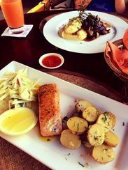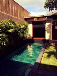 傍晚入住Seminyak的Anantara Vacation Club,单卧泳池别墅,4D3N的推广活动,如果不是这个活动,不晓得多少年后才会想到来巴厘岛。打开10号Villa的大门向里望,正对泳池。1.4深的泳池可以小游一下,视线联通房间的下沉式浴缸。有整套锅碗瓢勺、刀叉碗盘,可以做饭,适合家庭。泡澡浴缸,贴心地准备了细致到浴盐的全套洗漱用品。此外主卧和泳池边还各有一个冲淋房。 今晚剩下的时间就把一日游的疲惫全泡走。Villa节奏就是尽可能地慢下来,早起先游几圈,做段瑜伽拜日式,垫些新鲜水果,醒透了再去餐厅吃早餐。早餐是套餐,在范围内自选,内容很丰富,饱到没胃口吃午餐。餐厅旁种满了天堂鸟、鸡蛋花、莲花。 懒得外出,晚餐在Villa解决,春卷超级好吃。巴厘岛的炸物做得都棒极了!主菜煎三文鱼、烤牛柳,巴厘岛人民非常理解中国人民对红肉全熟的需求,不过千万要7分熟,10分指得是焦的程度。这餐1000+k,主菜不如小食,略失望。
