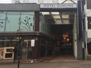HOTEL SUNLINE FUKUOKA OHORI。地铁大濠公园站下,4号口出来拐个弯就是,非常方便。今天给我们房间升了一级,一张床变成了两张床,但房间还是那么小,箱子都快堆门口了…