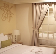 位在Thonglor区域是Una选择的第一考虑,因为距离热闹的siam不远 又离BTS近,再加上Thonglor是Una一直很喜欢的区域,所以选了这家饭店。离地铁站不远也不近,悠哉悠哉散步走去不嫌远的距离,可要是拖着大行李走,也是有点困扰,所以饭店有个贴心服务24小时提供tuktuk车接送。饭店的外观,是鹅黄色的温暖欧式度假风,靠近外侧的房间都有个小阳台。浴室也是小巧小巧,有浴缸可以泡个热水澡放松一下,沐浴用品也包装的很用心,不过没有提供牙膏牙刷 但为了卫生和环保。就像住在一楼的时候,一度房间有跳电的状况,柜台的小姐一直都很nice的帮我们处理,总之还是比较满意的一家酒店