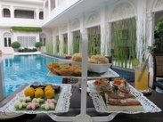(酒店位置和交通) 这家酒店虽然在古城外,但是就在河边主要大街Charoenprathet Rd 上。150米外路口就是著名的CHEDI酒店。再走一个路口就是Night Bazaar。中间一个小路口处一个吃米粉和甜水的小店非常赞!同一条路上 (Sridonchai Rd) 还有7-11以及两家比较高档的餐厅。从酒店走到塔佩路大概一刻钟,到瓦洛洛市场20分钟。因为这里位置非常方便,所以我们只是在搬到酒店的时候用了一次TAXI,以后都靠自己走了! (酒店设计和内部环境) 酒店是“殖民地风格”的建筑。装饰颇为精美,感觉非常新。 (房间) 酒店好像只有4层楼,我们的房间在4楼。面对酒店内庭也就是泳池。有自己的小阳台。落地窗。采光很好,感觉很新很舒适。 (卫生间和浴室) 卫生间洗手池部分面积小,但是淋浴和浴缸都够大够新。淋浴有传统的和新式的“天顶洒”两种可调。但是传统的龙头不知道为什么会有吱吱的噪音。 (泳池) 泳池不大,但是很干净。环境很美。躺椅不算多,但我们在的时候也没出现不够用的情况。躺椅边有小桌子、饮料菜单、叫服务生的小铃铛,感觉很好。 泳池边还贴心地准备了水和杯子。 (早餐) 包括在房费里的早餐非常赞! 餐厅就在泳池边,虽然不大,但是也没有发生太挤的情况。 食物方面,除了基本的buffet部分,现点的热食品种非常多,而且貌似不限量!我们各都点了三种了,服务员还在问我们还要什么!除了有各种蛋、西式点心(超级推荐他家的Waffle,不知其它热西点如何,因为第一天的Waffle特别好,第二天还是点了Waffle)、泰式/中式的有稀饭、粥、还有鸡蛋面鲜虾云吞。配面包的有三种貌似自制的果酱,其中特别推荐一种深色的名字好像叫Rosellet,是一种热带植物,但是味道很像云南地区的玫瑰果酱。 (餐厅) 除了早餐,我们还在这里用了一次下午茶套餐和一次晚餐。 下午茶套餐非常惊艳。(可以要求他们把套餐里的热茶换成其它的冰饮料)。550泰铢的价格,貌似正好是旁边CHEDI的一半,性价比好多了。 这里的晚餐菜做的也不错,而且不贵。两个人大约800到1000泰铢。比附近那家看起来很美的The Whole Earth好多了。 (公共空间) 不知为什么泰国酒店泳池边都喜欢搞一个图书馆。 这家酒店也有一个所谓图书馆,但里面的书都是胡乱拼凑的。但是图书馆和泳池之间的沙发区布置得很好,很适合几个人聊天。 其它 其它最值得称赞的就是这家酒店的Mini-Bar了,因为是全免费的!有可乐、雪碧、当地啤酒、果汁、两种小饼干和果仁。对于泰国炎热的天气和容易饥饿的游客,没有什么比一个充实和免费的Mini-Bar更赞的了! 另外,这家酒店是下午两点才退房的。这样早上的游览时间不受影响。当然,入住的时间也是下午两点。