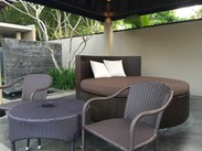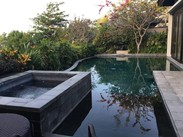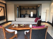 悦榕庄吸引我的是悬崖酒店,想一下就觉得很壮观,凭崖临风,俯瞰大洋。悦榕庄的当然只有Villa,从Agoda和Booking上看分为Garden View、Sea View和Ocean View三种。但看了大量评论后,发现有人说所谓Sea View只能看到一点点海,Ocean View也只能看到一角,只有Cliff Edge才能直面大洋。我在官网上果然看到了这个房型,经邮件确认这个房型只能通过官网预订。但是要6000多人民币一晚,为了巴厘岛行程的完美收官,我狠了狠心定了两晚。本来计划入住当天中午就感到悦榕庄,以便在第一时间办理入住。没成想当天的行程几变,最后在下午5点才到达,晚入住了3个小时,折合损失800元。 大堂真是大呀!悦榕庄的园林处处都很精致,中规中矩。入住很顺利,房间很大,403平当然很大!两个卫生间,室内浴缸、室内淋浴、室外淋浴,大客厅。这是从卧室里看出去。其实从这张图片可以看出,我们住的223号景观并不完美,被半截山坡挡了,更要命的是这个山坡在施工。不过从发呆亭的角度看过去,景色恰好。所以我也没再去要求调换房间,入住时间这么晚,估计也没得调换了。按摩池不错,在发呆床的背后有控制开关。分两档,Make Up档基本是只加热,另一档就是按摩挡。女儿超爱这个按摩池。无边泳池的有效面积差不多是4米*8米 别墅里偶尔有猴子光顾,所以房门要保持紧闭,手机、食物等零七八碎的东西最好不要放在外面。我入住的两天猴子来过3次。看看没吃的,一会就走了。我仔细研究了别墅的布局图,推测218可能是景观最好的一卧室别墅,219也可能不错。220的总统套间是所有里面最好的。 Bambu是早餐的餐厅,在公共泳池附近,也提供晚餐。早餐也是先选“Tea Or Coffee”,然后需要通过菜单点鸡蛋类。煎蛋、蛋饼都可以选,不想要过生的,就强调Fried two sides。其余都是自助了。有果汁、水果、面包、沙拉、寿司、炒饭、粤点。不过,与悦榕庄的价格比起来,早餐的水准实在是太差了。很普通的四、五星级水准,完全不值得期待。我们在这里吃了一顿晚餐,一道印尼炒饭,一道三文鱼,三杯果汁,一共花了800K。下面是餐厅附近的景观。 酒店有中文接待,电话打到前台说“Chinese Speaking”,前台就会让中文接待接听。给女儿加了一张床,是免费的。女儿的早餐是20美元一餐。成人加一个早餐从订单的说明上看是147美元一餐,宰人呀! 酒店的私人海滩还不错,只要电话给前台说“I want a buggy to the beach ”,10分钟后就有电瓶车来接,送到海滩上。不要试图步行去海滩了,坡很长。海滩不太适于游泳,也不是完全不能游,朝隔壁度假村方向走一段,就有一些地方可以游泳。海滩上还有一些黑鹭样子的海鸟,你走得很近才会飞走。可惜我被上次在Dream Beach的经历吓怕了,根本没敢带相机去海滩,所以啥照片也没有。走的时候跟海滩上的服务员说一声,他就会替你叫Buggy过来接。 我对悦榕庄的感觉很复杂,别墅的私密性很好,悬崖酒店的风景确实也很好,如果能住在218或219就更好了。但是这几乎是悦榕庄唯一的优势。下面我列举一下对悦榕庄的不满: 1)几乎全部是亚洲客人,半数是国人,所以服务水准也是国内标准的 2)设施欠维护,卫生间异味很大,其中一个马桶的抽水是坏的,我只能用另外一个 3)免费的红茶和绿茶均索然无味,简直是最低档的货色 4)海滩的设施和服务都非常简陋 5)入住先收我100万卢比的押金,巴厘岛之行,这是唯一一家收押金的酒店,其余两家均是没有任何押金就可签单。 6)早餐太次,三文鱼寿司上台就被抢光,然后半小时也没看到补充 7)客厅的电视屏幕上两个硕大的斑点