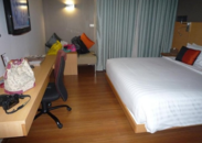 酒店处在万豪旁边的一条深巷子尽头,安静是一定的,可是晚上走起来还是有点害怕滴。酒店比较新也比较大,浴室和厕所是分开的,中间是洗漱盆。那个床超级大,三个人睡都够。