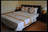 硬件是不错的。但是服务让人想骂人。说实话,外观真没什么问题。国内三星的样子,我们路上也住GH,所以,乍一看没什么。 但是: 入住时被告知,花园房在马路对面。于是,去对面的前台办理入住。接着,糟糕的事情就开始发生了。 1.下午一点半去酒店餐饮,被告知结束了。任何吃的都没有了! 2.晚上,洗澡发现一个房间没有热水,第二天早上起来都没有热水了! 3.预定时说过四个人,两床房标间。结果推门进去,一间是大床。想想算了,两个女孩子也就不用换了。晚上,问前台再要一床被子,从9点开始电话前台,一直到10点一共四个电话。后来才发现,她一直“ok”,其实完全听不懂英语,也没有叫人上来。我们就撑着,也不能睡觉!最后,终于上来一个人。表情严肃的告诉我们,一间房,一条被子!实在生气,严厉对峙!终于送了一条被子上来!已经11点了,非常疲倦! 4.隔音非常差,可能周末。很多当地人在这里度假,怪叫到半夜2点,两间房的四个人全部吵醒!!!没有力气去投诉了!熬到天亮,匆匆换酒店! 5.我们有行李,有人,而且美奈下着倾盆大雨。前台叫车,叫了四人的小车,放不了行李。行李员看着车,车停着,我们不懂越南话,不明白怎么了?前台没有任何沟通,低头坐在高高的台子里面,看不见外面的情况。对峙很久,才重新叫车! 6.同伴问花园房区域的前台换越南盾,被告知,小面额美金不换的。只换大面额。同伴到对面海景区的前台换,二话不说,换到了!