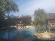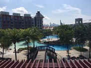 还好check in不排队,想着有房间的话应该可以先给我们洗给澡睡一会吧!没想到没想到!前台说房间还没好!好了回电话联系!于是楼主和小伙伴热到在不想动的前提下呆在了酒店大堂,然而!一个小时过去了...啥都没有!突然楼主看到有人check in拿到房间了!这是why!!!小伙伴赶紧去询问,说人家定的是池景房(就是面对酒店游泳池,还有个阳台),有房间可以入住...前台说,池景房还有一间你们要吗?每晚多加20新币。必须要!赶紧加了钱拿了房卡回房间洗澡睡一会!!! hard rock酒店的泳池也算得上是一个小景点啦,这个泳池名胜世界的思家酒店的主客好像是都可以进入的,入口处有租借浴巾,也有换洗的地方,像我们直接住hard rock的其实可以换好泳衣就下楼了,如果是住的远一点的可以带着衣服来,这里是有换洗的地方的,浴巾的租借是要登记的,租几条还几条。