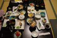 这是一间传统的日式温泉酒店,提供入住当日的晚餐和次日的早餐,在办理入住的时候需要跟酒店定好早晚餐的时间。然后就会有服务员来给客人准备,都在房间里。这家酒店的服务员都是上了年纪的老太太和老大爷,英语很差,基本靠比划,不过态度非常的好,偶尔也能蹦出几个中文来,做事情特别有条理,穿着日式的和服,进出都是跪着的 日式酒店是可以尝试一次的,感受一下还是不错的,不过总的说来不太习惯,特别是睡在地板上,感觉很硬。日式的早晚餐也吃不太习惯,感觉吃不饱,呵呵。但是来了,总归要住一晚,体验一下。酒店的六楼有温泉,可以免费泡,是男女分开的,不过我们没去
