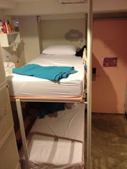 在Siam Square住的青旅Lub.d,住过的最奢侈的青旅床位啦!! (主要是想着最后一天睡机场省了钱,而且逛街方便!我们两天都是逛几个小时,回来放东西,顺便蹭网,然后再去继续…… ) 女生四人间床位,周末550,平时500, 有国际青旅会员卡可以打9折。 虽然房间里面没有卫生间,但是有女生的公共浴室,而且女生房间和浴室都是和其他地方隔开的。 反正条件对得起价格,而且位置就在Siam Square那体育场的对面,离周边商场都近(绝对的购物考虑)!
