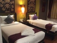 是芭东一个泰式风格的新酒店,房间非常不错,淡季170rmb的价格绝对秒杀国内那些连锁酒店,旺季350还是有些小贵,毕竟只是一个独栋酒店,没有花园泳池神马的,周边有点荒凉,走到芭东中心的江西冷10分钟吧,有免费wifi,check in的时候会给你个写了密码的小纸条