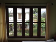 酒店的老板到了。是个三十岁左右的女生,说自己叫meimei(音译)。这名字让我们叫的真尴尬,都该叫她大姐了,她名字却是妹妹。路上TANYA跟MEIMEI小聊了一下,英语不好,沟通起来有点问题。顺利的到达酒店,准备check in。拿出打印好的确认信,meimei告诉我们需要支付9000B。可确认信上明明写着5000B。TANYA说的英语MEIMEI听不懂,MEIMEI说的英语我们也不懂。酒店的有个憨厚男,也在用蹩脚的英语比手划脚的在跟我们解释。大概他们英语太差,没看懂确认信。以为我们预订的日期有问题,需要原价支付。艰难的沟通后,他们终于明白了。按照确认信的价格让我们入住了。 酒店有免费的车送我们去市区,只是有时间限制,晚上九点后就要收费。我们住的是顶层的房间,听说拜县虫子多,选楼上是明智的 选择!在酒店准备洗澡,我发现厕所里四五只壁虎在墙壁上,甚至更多!虽然我不是很怕壁虎这东西,但是这么多壁虎我还是头一次见到!之所以有这么多壁虎,是因为厕所其实是在房间外面的,顶只是有个挡雨的作用- -还好我们房间没有发现有虫子。而且拜县晚上跟白天温差很大,这厕所又是通风的,冷啊!