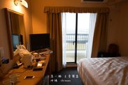 我们去的时候,海风正大,酒店前面的树叶吹得晃来晃来。我们一下车,就感受到扑面而来的肆虐的海风。酒店前台大叔很热情,就是在交流的时候,有时听不懂他在说什么,不过语言不通,还可以靠肢体,基本交流也没问题。我们办理check in 后,前台大叔拿给我们一个传真,是次日赏鲸取消的通知。而我们那天刚好累得厉害,也不想去赏鲸鱼了,这条传真来得刚好,总算可以好好休息啦。 在前台周围,有很多纪念品在售,还可以代订冲绳水族馆门票,有一定的折扣。拖着我们的行李,我们来到了三楼客房。房间当然还是日式简约风格,但是有个面向大海的阳台,也有无线wifi,信号不错。房间干净整洁,有一个双人床,一个桌子,一个椅子,还有液晶电视,桌子下面有冰箱,电水壶和杯子。浴室很小,但是什么也都有。酒店里还有自动贩售机、投币式自助洗衣店、熨烫服务和日报。早餐就在酒店进门的大厅处,早餐包括西餐和冲绳当地料理的自助早餐。