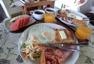 因为酒店的早餐都在10点半结束,有贪睡症的我们也逼于无奈一早就起床了。却发现早上的岛上是非常漂亮!值得一赞的是,这里真的非常安静,这里就是个无人打扰的世界。 酒店早上的美式早餐!很简单但是真的超级好吃!能量都补充回来了!