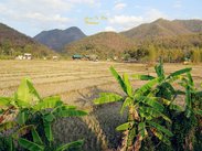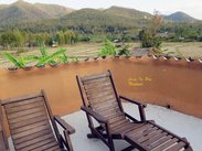 在酒店楼顶露台,眺望酒店一角,感觉像在童话小镇里。酒店背后就是乡野农田,加上几棵热带的芭蕉叶,色彩靓丽不少。楼顶露台上的躺椅,晚上我就是在这看星星的,超级舒服,酒店还有个小泳池。