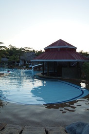 我们在薄荷的酒店是Bohol Wander Lagoon Resort,是一家韩国人开的小型度假村。我们本来是订在Swiss Resort,但订满了,但事实证明订在Wander Lagoon没有让我们后悔,Agoda上的照片绝对降低了它的level啊!! 这家酒店有两个优势我很喜欢,第一酒店有自己的车,到Alona Beach免费,随叫随到;到别的地方可以预定,费用不算很贵。 第二就是他家泳池啦,Wander Lagoon是度假村型的,房间都是独门独户,面对泳池。泳池是特比设计过的,底下有灯,还有滑滑梯。泳池边上有个吧台,座位是设在池子里的,也就是说你可以在游泳的时候坐在泳池的吧凳上点一杯酒,很惬意啊!
