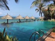 莲花酒店是分开两边马路的,一边是园景的房间,一边是海边的房间。园景的那边也有一个游泳池和SPA。然后海景的一边就是一个和海连在一起的游泳池,游泳池不大,但是完全上档次,是装逼拍照的好地方。游泳池旁边就是一个吧台,还有露天餐厅。这个酒店完胜就是因为这些完美的公共区域。太爱了❤️❤️❤️房间基本是独栋别墅的,一栋有上下两个房间,每个房间的装修基本上一样,价格取决于靠海还是园景的。每个房间的阳台都很大,有着不一样的靠椅。卫生间也是露天的虽然那么完美的酒店,但是价钱也不贵哦,因为我们去的时候准备是春节,刚好是旅游旺季,所以价格是500左右一晚。平时淡季300多真的超值!我选择这个酒店完全就是被这个海天一线的游泳池所吸引的!