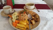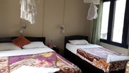 在小巷深处,靠近河边。老板带我到房间,3人间啊,1个人住真有点奢侈,放下行李,四周观察了一下,环境真不错,整个酒店都没什么人,大概都去参加活动了吧。老板告诉我可以去餐厅吃午饭,随时都可以去喝奶茶、咖啡,午餐很丰盛,吃得饱饱的。
