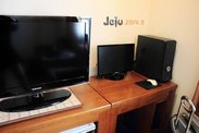 房价有wifi,good!房间有浴缸,不错,晚上回来泡个澡,舒服!电视挺大,就是完全听不懂。不过有两个台是可以看懂的哦,一个CCTV4,一个中华电视(估计是台湾那边的)。旁边还有个台式机,不过我们自己带了电脑来,所以没有打开过。电视下边有个小冰箱,里面每天送两瓶水的哦。不过有冰箱不好就在于夜深人静的时候,它那个制冷的声音真的好吵啊!房间的各种电器都是三星牌的。