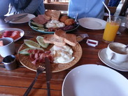 住的是提前在booking上订的pai country house,600B的标间。这家就在派县的汽车站附近,位置挺方便的,不过房间旁边有个养鸡场,可以把人闹死…… 然后大半夜还听得到有人在做祷告。在pai country house吃得最奢侈的一顿早饭,人均100B左右。