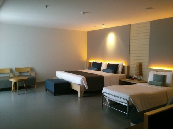 在灰尘漫天的道路上,拖着行李,苦逼的赶赴新的Hotel,不久便到了,进到大厅,还是觉得还OK~7人行太过于明显,我们定了3间两人间,前台要求第七人加床,我们也没什么好说,付了800B的加床费,就CHECK IN了,太累,只想快点回房间。进入房间还是很满意的,350RMB,真的太值了,没有HOTEL外观的掉渣,房间相当满意,老高大上了,有滚筒洗衣机,双开门冰箱,大床,阳台,超大可以被偷窥的浴室(嘻嘻),都够了~