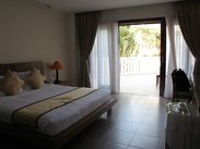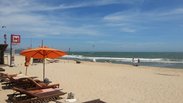 我们住的酒店,在美奈中央海滩的西部。可能因为前一晚是情人节,酒店住满,房间还未打扫出来。在大堂等待,保安很贴心地端了两杯冰冻的鲜榨果汁过来。大堂有两池锦鲤,池底是透明的,可以看到下层的SPA馆。 酒店海岸Bar的午餐。无边泳池周围一圈躺椅,鬼佬像煎蛋一面翻着面地晒日光浴。泳池旁可以直接走下沙滩,很多人在玩kite surfing。 因为原来房间的wifi不好,床是由两张拼成的,所以换了矮一层一张大双人床的房间。因为是周末,价格小涨。但是有个巨大的露台,房间也很宽敞,所以还是划算的。有私家露台,海风很强劲,椅子上都是一层细沙。