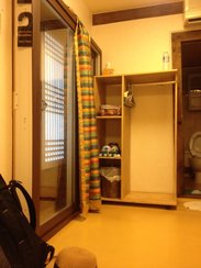 院子很小,但是很有韩国特色,都是木制的。接待我们的是一对年轻夫妇,男的在操作电脑,女的在屋里收拾房间。听出我们是中国人,男的把他老婆叫出来,然后用极其流利的中文跟我们交流入住的事宜。我们都怀疑她是不是就是中国人。其实人家真的是韩国人。 找了好久都没找到我们的订单,他们就给艺龙打电话,后来等了很久,发现是艺龙那边出了问题。由艺龙在韩国的代表给我们出面找了一家在隔壁的更好的民宿,差价由艺龙承担,我们真的是又惊又喜。本来我定的是没有独立卫生间的。可是这下可好了,给我们换到一个更加高档的房型,也是麻雀虽小,五脏俱全。小院也非常古朴,有欧美的游客,有一对釜山姐妹,还有就是我们了。在吃早餐的时候,我们愉快地交谈。韩国小姐妹对中国很好奇,我们用都不怎么好的英文交流着金秀贤,交流着北京,交流着首尔。后来我还给她们泡了中国茉莉花茶。哈哈哈。我们虽都只是住一晚,但这个民宿感觉真的很棒。 旅店内有免费的wifi.对了,另外很重要一点,虽然韩国的插电口跟中国不一样,但我们住的这两家旅店都有转换插头,而且是就在房间里插着,供客人充电用。