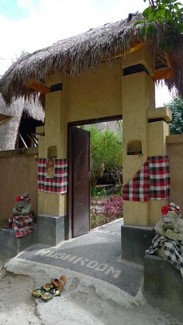 房间里有空调,无冰箱,无电视。开放式卫生间。淋浴、水盆、座便都有墙体隔断。竹筒包裹着水管,没有莲蓬头,水是从顶端流出的,原始的感觉,呵呵。无热水,太热,也无所谓啦。mushroon滩比较清静,coconut滩相对热闹,也是冲浪,及水上一日游的地方。除了villas,他们还有beach屋,独立的复式茅屋,450千卢比。它不是真正意义的建在沙滩上,而是沙滩后的岩石上,性价比更高。酒店泳池旁有两个大大的观景餐台,之间有台阶可以下到公共沙滩。 mushroom区没有夜市,很静。晚饭在花园店的开放式小餐厅解决。印尼炒饭(25千卢比)、印尼烤串饭(30千卢比)、玻璃瓶可乐(10千卢比)。还有一个好处,餐厅,确切地说应该是大号亭子,有花园店区的唯一电视看,42寸液晶。