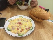 我们入住的是hello酒店,在蚂蜂窝上很热门,前台的美女英语很好,说是我们预定的是小房间,然后留了一个大房间给我们。酒店没有电梯,是旋转的楼梯,而且我们的房间是顶楼,爬上去有点累, Hello的早餐很丰富的,它有一个菜单给你自己点,都是现做的,这个芝士煎蛋真的好好吃,很浓的芝士,还可以拉丝哦!