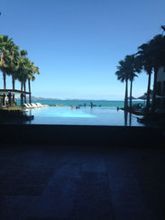 CAPE DARA, 要告诉你们的是,比我的预期要好出太多,端正统一的品牌色系,清静的周边气氛,紧邻国王官邸的安全系数(芭堤雅治安不佳),贴心不做作的服务。唯一的缺点,酒店的私家海滩并不适宜游海泳,暗礁岩石较多。所以对于不敢游海泳的朋友,这里是完美的。 她的美在于与大海蔚蓝的完美融合,从房间临海一侧所有的墙面全都是玻璃,包括。。浴室,感受到了吗?一种臆想着要霸占大海的白天与黑夜,却又担心被大海饱览无余的矛盾。 酒店的泳池是又一让我不愿外出的原因,在泳池内的吧台点上一杯长岛冰茶,享受一刻的悠闲。酒店内每天下午四点起酒水饮料买一送一哦!