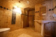 据说是Goreme最早的Cave Hotel之一,比较有名。我俩定的是35欧一晚的大床房,独立卫浴。含早餐。酒店有Wifi,为背包客准备的厨房和饮水机等设施。酒店还有个游泳池。我们这种Cave的room在hotel最高处。 酒店也提供红绿线等线路和热气球的服务,不过我们check in的时候已经都订好了,所以没跟老板定任何东西。果然老板之后都不冷不热的……好在我们也就住一天。整体来讲,这里还是很舒服的,推荐给各位!