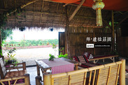 在拜县,最划算的就是住宿。如果你没钱又想睡的好,去拜县吧,80多元住独栋别墅,150元以下住度假村,不是说笑。这里有着大大小小上百个度假村,散落在田园乡间,每个度假村都是一个有主题的庄园,走进去,本身就是一道不比旅游景点差的风景。如果可以在拜县多呆一天,一定要来个“酒店巡游”了。 我们所住的“Dalah Resort”在小城外西北角,接近中国村和云来。坐在摩托车改装好的挎斗车上,顶着凉凉的夜风,从不起眼的乡间土路七颠八拐进去后,看到了别有洞天的景致:草地中辟出池塘浅溪,植以莲花。木制的小屋下老外在和老板娘畅饮,几条乖顺的大狗绕膝而坐。躺椅和秋千点缀小屋周围,仅有的8间客房全部住满,却不吵闹。小屋的地面铺上别致的草席,电视桌、垃圾桶也全是相应的草编,推开落地窗,阳台上的藤椅可卧着看星,脚下是清渠和蛙声,阳台上的咖啡免费自取,面包机还可用来烹调早餐。