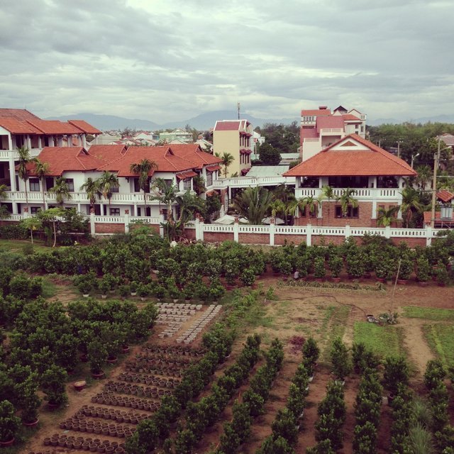 酒店的视野很好,在房间可以看到对面的房子和旁边的农田,在餐厅向外望去就是泳池。