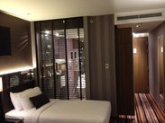 这次订的是在素坤逸BTS边上的叫The continent的酒店,咋一看像是洲际酒店,其实与他们没关系,好像是个准五星。设施都挺不错,而且在这么个寸土寸金的地方。因为是新酒店,所以价格还比较理想,在Agoda上订的,一晚上大概人民币600。酒店占地挺小的,但很高,有快40层,吃饭都在35层,健身房36层。推荐一下,交通太方便了,马路对面就是Terminal 21。