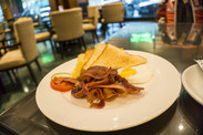 出门打的士去City State Tower Hotel。机场有白色和黄色两种的士,白色起步40P,黄色起步70P,攻略说黄色较正规,于是选了黄色的士。上客点有工作人员问你到哪,然后写个小字条给你,上车交给司机就可以了。 10几分钟就到了City State Tower Hotel,晚上黑乎乎的,看不清,问了酒店门口的保安确认没错,才付钱下车。码表显示258P, 给了300P,司机说不找零了,当tips,我觉得也还顺利,就算了。 酒店里面看着还不错,问了一下前台房价,只剩下Superior Room,2350PHP/晚,当时2点多,纠结了一阵子还是决定睡大堂的沙发省一晚。在沙发上靠着,迷迷糊糊睡了几个小时,总算熬到天亮。180P点了个培根+煎蛋,送咖啡。结帐给了200P,20P没要当小费。