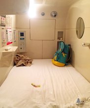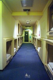 酒店位置,离南海电铁、法善寺、道顿堀、大阪难波站、JR难波站、地下铁日本桥站都很近,胶囊旅馆入店需脱鞋,把鞋子存在鞋柜里,放心,旅馆内部全部铺着地毯,很干净。旅馆男女宾分层居住,很安全。房间虽小,但该有的一样都不少,也有面积更大的胶囊,适合高个子的男生居住。