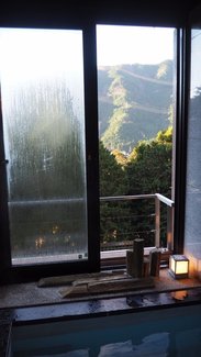 在穷游看到几个介绍它家的帖子。是个很有历史的温泉旅馆,明治天皇还来过这里疗养。我们对它的评语是“living in past glory" (生活在过去的荣光)。 几个点造成了我们对它的印象差。 一,那么大的温泉旅馆,居然没有个人能说像样的英文,后面连山沟构里的白骨汤,和妻笼比它小多了的旅馆都有能说英文的人。 二,旅客有需要帮忙的地方,帮不上,就随便打发了。 三,公厕也太不注意清洁了吧,第一个进去有一坨屎搁在那,第二个勉强能用,但也是臭味不减。那么大个旅馆,客人没可能一定要憋到回房间上厕所吧? 四,晚上铺床的员工,3-4个,我们吃完饭马上直接开门进来,(虽然事前有告知)噼噼啪啪的铺床,真的很失礼,很尴尬呃。员工都赶着下班,如果你给我个十分钟我们就出门泡脚了,有必要那么急么? 五,九点以后大堂,一个人都没有。 我们要出门想要换回自己的鞋子,还得自己进去放鞋子的的房间慢慢找。 六,吃晚饭的时候,最后一道的甜点我们等了快半个小时,服务我们的女将被叫去吃晚饭了,不怪她。但就不能排个吃好晚饭的女将来么?搞得这么冲忙。 总之,完全对不起它的价格。 我不是个很挑剔的人,但这么说吧,要得起那个价钱,就得给得出相应的服务。(这里一晚的价格,够我们住东京air bnb4晚了。)我们定的是带山景和私人风吕的房间,房间还是可以,除了东西都有点日子以外。也玩了它家的收集stamp的游戏。 到车站也有接送的车子。这里奉劝要去它家的旅友,如果一定要去它家,晚饭还是早点吃,厕所尽量能在自己房间解决就自己房间解决。