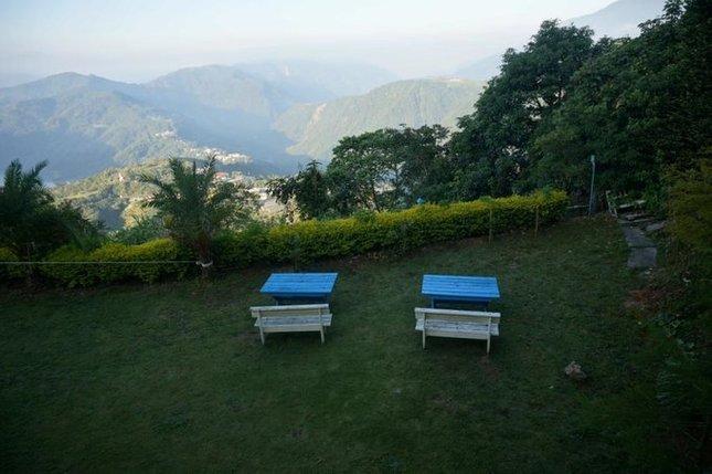 好在民宿环境不错,房间门口就是宽敞的露台,吹着夜风,小坐一会儿,心情平静下来。有失必有得,今晚预定的双人间,两张双人大床4个人住都没问题,一晚仅1400元,如此大规模的酒店这样的价格,在清境很难找到,这是提前一个月在雅高达网站上抢到的特价房,平日都是3000以上,连之前台中民宿的主人都说有赚到。吹着晚风,吃着可乐果,一个人坐在清境的山上看着远处乌黑的山峰发呆,别有风味。 酒店提供自助早餐,无论是西式的牛奶咖啡吐司,还是中式的豆浆稀饭小菜,一应俱全,当然水果也是必不可少。早晨的阳光洒进小花园里,柠檬黄的墙壁格外鲜艳,站在观景台边上眺望远处的山谷,层次分明得像一个蛋糕,一切都充满活力。