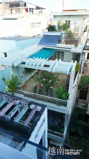 我们住的这家酒店叫“yellow house saigon”,酒店离范五老街和新咖啡很近,从酒店的巷子出去右转笔直走过一条大马路一条小马路就到新咖啡了,步行5~8分钟就能走到,而且酒店在巷子深处,晚上很安静。 当时我订的是豪华双人间,由于我们三个人,入住的时候加了床。这间房间是这家酒店价格最高的,因为带厨房带阳台。我订的时候45刀一晚,合人民币也就不到300块。性价比真高。我们房间自带的厨房,很大,不过没用上。 我们住在三楼,阳台,很大,很干净!阳台顶部的一般是这样的木栅栏,爬满了花!这家酒店走的是日式风,据说房间和酒店的很多东西都是老板娘去泰国的宜家采购的。 这家酒店进大门都要脱鞋,把鞋放在大厅的鞋柜里,然后会提供拖鞋给大家。不过入乡随俗,我们进酒店全程都是赤脚了。酒店wifi信号不错,到处都有,不收费哦。 300不到的房费还有免费早餐吃,泪流满面啊!早餐也是自助式的,老板娘亲自准备,东西不算多,有稀饭,面包,果酱,炒饭,炒面,水果,但是足够了。