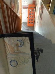 橘月门口,走廊,楼梯,客厅很小资,邮筒是可以放明信片的,店家会帮你寄的,走廊里的书都是可以带回房间看的,记得原处放回就好喽。每个房间还有自己独立的CD机,可以放音乐。超有感觉啊。 我们4个住的房间,妈妈们在2层,我们在3层,户型都一样,区别就是一个是大床房,一个是双床房。卫生间就是那个圆圆的大柱子后面。住的好舒服的。鞋子脱在房门外面,屋里的地有层塑胶,一点都不冷,当然如果你不习惯,在屋里穿拖鞋也可以啦.橘月的早餐,我们住了2天,每天早晨都有所不同 吹风机 洗发水,浴液都是有的,其他的一次性用品要自备啊。对了,房间里还有冰箱,我们买的牛轧糖放冰箱里的,要不非得化了不可呢。要说缺点,有的,因为屋里有个小冰箱,第一晚我有点没睡好,老听见冰箱启动的声音,第二晚想把冰箱电源拔了来的,但是没找到口,于是把放冰箱的柜门关了,竟然晚上没感觉像第一晚那么吵了,反正我是没听见声了 。 但是春节期间他们要收50%的房款预付的,这个是最大的缺点吧,因为汇率给的实在不合适,当时银行汇率好像已经4.7.了。但是他们却按照4.5的汇率核算人民币让我汇款。。。这个真的需要改进呢。好在钱也不多