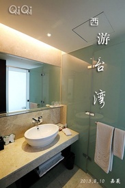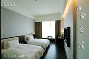 这是一家新开的酒店,硬件设施达到5星标准,房间大,设计简洁时尚,窗台还提供功夫茶茶具和免费的饼干,阿里山高山茶包。2张大大的床软硬适中,一家三口绝对睡得舒舒服服。卫生间同样大,干湿分区,冲淋房和浴缸都很有设计感,洗护产品是瑰柏翠的哦。 房间里有wifi信号,并备有转换插头,我对这家酒店的环境相当满意。它到嘉义文化路夜市步行大概15分钟。可惜因为第二天6点出发去阿里山,酒店的其他设施没来得及好好体验。