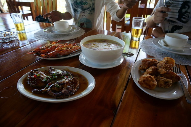 酒店就大概是8间客房,家庭式的旅馆,有泳池有wifi。饭菜味道还可以。工作人员都很nice,有什么问题都有尽力帮忙解决。在anda没有遇到中国人,给人感觉是个很宁静的地方。 因为觉得anda太远,怕打车找不到酒店什么的,在agoda订房的时候给酒店留言需要接送,East coast white sand resort的工作人员都很好很热情,安排了接送的车,往返是3500P。 下船的时候接我们的司机已经到了。上车以后大家都比较兴奋,这一路是沿着海过去的,风景很好。车速不是很快,所以从码头到酒店花了差不多有2个半小时。路况有些地方不太好,司机说是由于之前地震造成的一些毁坏,还在维修。 到anda的东海岸白沙滩酒店已经中午了。酒店很家庭的感觉,很安静。设施比较简单,但是景色挺好。lobby也很简单,随便点了些菜,都有海鲜,还算新鲜味道也不错。 从酒店看海,看颜色就美爆了是吧。酒店有私人沙滩。非常安静基本就没人。酒店可以借面镜和救生衣。脚蹼就没有了。不过岸边不远就可以浮潜还行。晚上没有什么娱乐的。lobby有桌球可以打。酒店附近都非常荒凉,没有啥好逛好买的。就呆在酒店里面。看星星非常棒,海面很黑,冬天的银河都能看的很清楚。 度假的感觉就是无所事事。在酒店想说做马杀鸡。可能地方太便宜了,酒店也是叫外面的人到房间来做的。一般般不是很推荐。下午准备去潜水。听说不远的地方有浮潜不错。另外是去一个叫什么岛的,船程要2个钟,我们就放弃了。联系酒店的工作人员,骑摩托车送我们到不远处的潜店。叫blue star。也有住宿和餐饮,看起来也还不错。老板是白人。看起来酒店里面也是欧洲人比较多的样子。