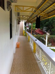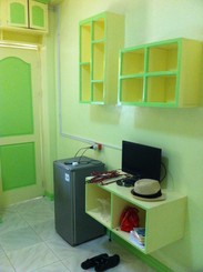 进了屋内,是个大床房,还有个小床,就是说能住三个人的样子,有冰箱,电视,热水器,卫生间,空调,条件还不错,我进门就在门口找地方寄绳子,好晒衣服,没想到小黑看见我,喊我了一句,就给我送来了晒衣架~~并告诉我在什么地方晒衣服。真心好人啊。