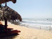 Aroma Beach酒店距离星咖啡大巴车站步行大概15分钟,这是连续两个出租车司机告诉我们的金玉良言,他们一定觉得自己不赚黑心钱特高尚,可哥哥们啊,我是拖着半人高的箱子好么?路很崎岖好么?我刚换的新磨脚好么。。所以走了快半个小时您知道么?好在抵达酒店后倦意全消。可以很公正的说,如果没有之前斯里兰卡的Jungle Beach酒店在前,我一定会被经验惊艳的五体投地。既生鱼,何生亮?可惜你在他后面呢。不过客观的说,酒店无论view还是住宿条件绝对是超一流的。 酒店配有专门的电瓶车把你送到属于自己的二层小楼。每栋联排别墅之间以竹林间隔,还颇有点侠客行的意识。房间的楼梯,竹子做的,很古朴。我们这间看不到海,本来还愤愤不平,后来发现拥有海边View的都是7人左右的套房、顿感平和很多。酒店的钥匙还配了个小麻袋,用来装小东西,真贴心。